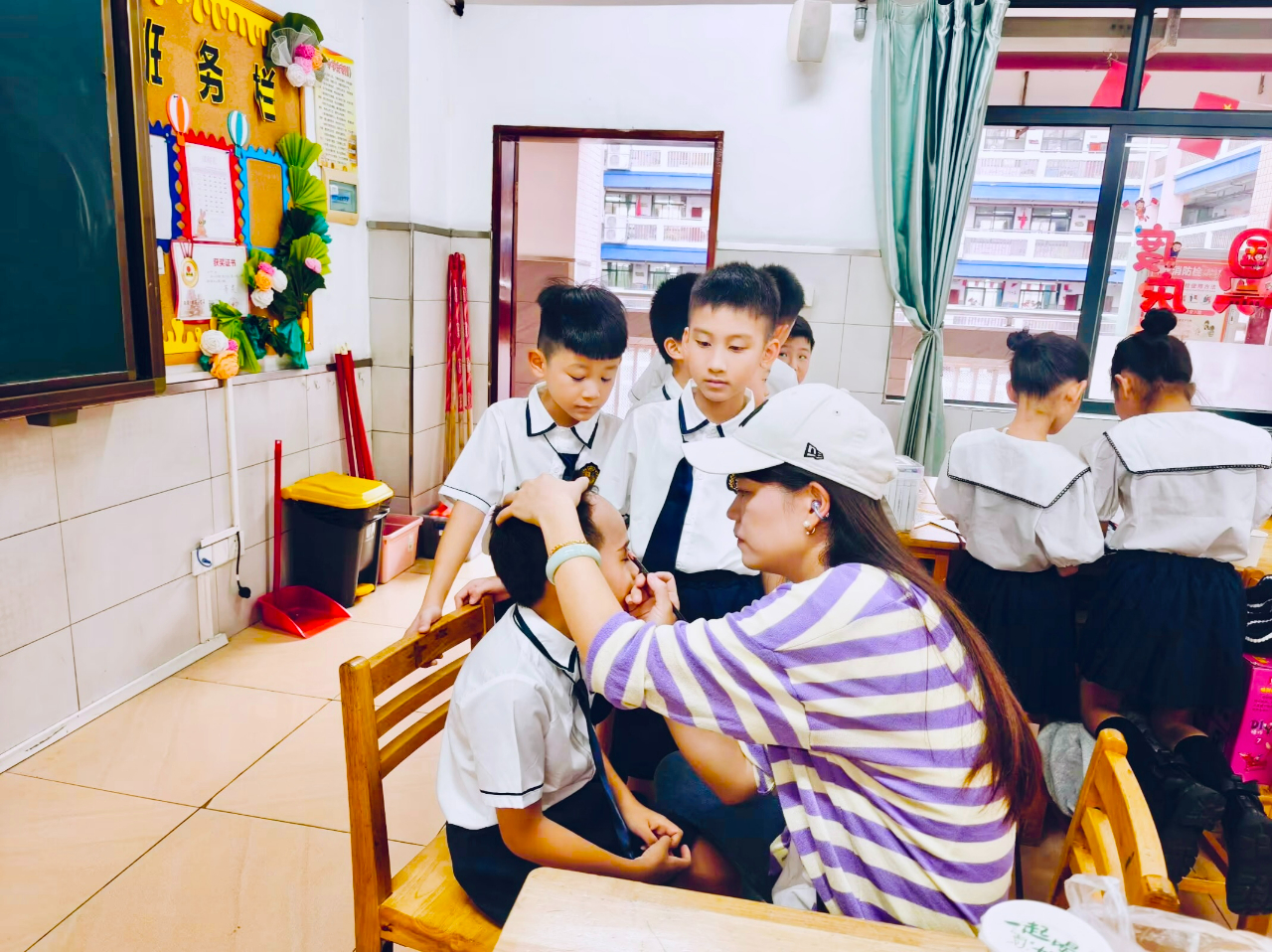 孩子們認(rèn)真書寫,老師們用心批閱