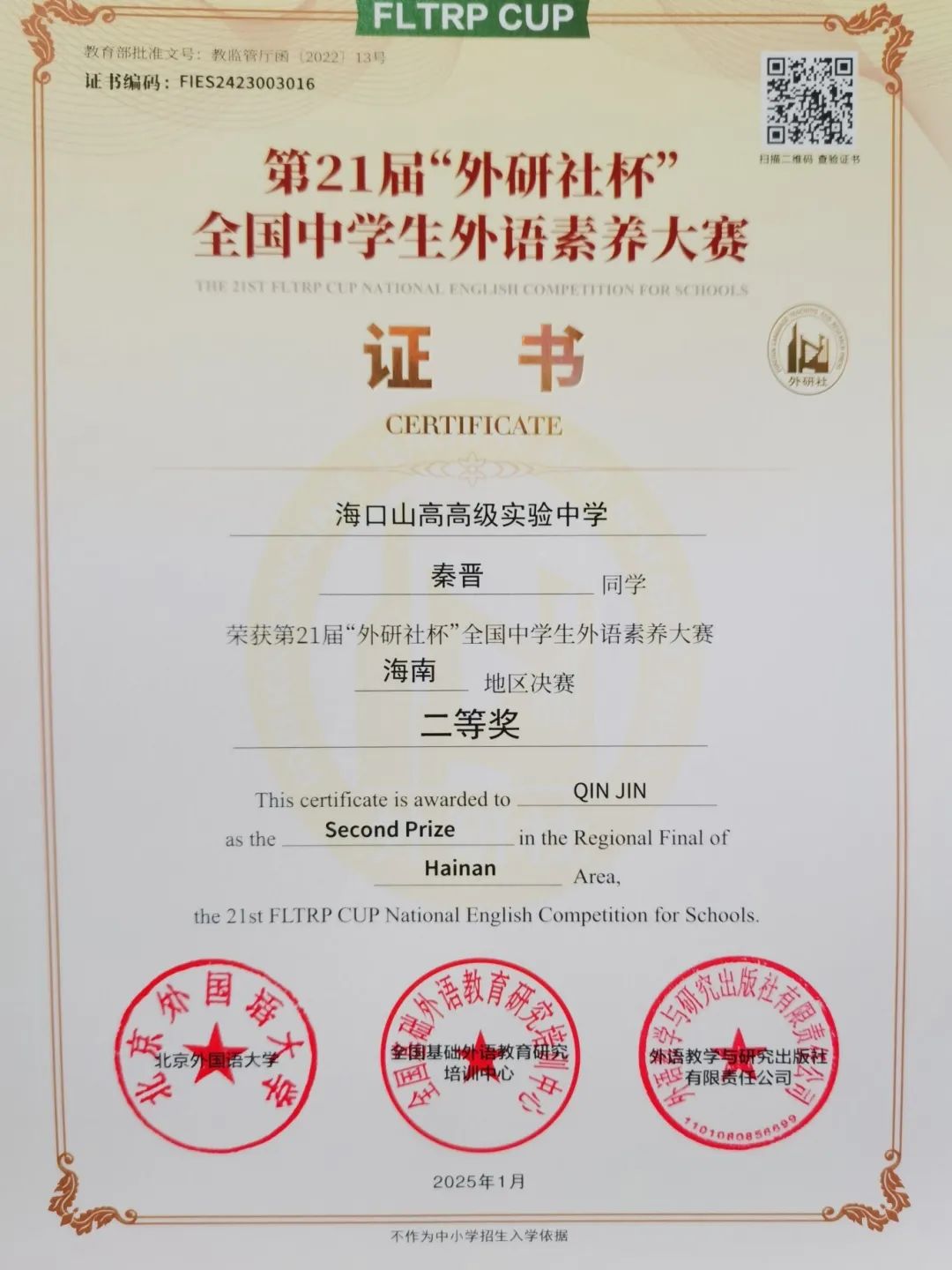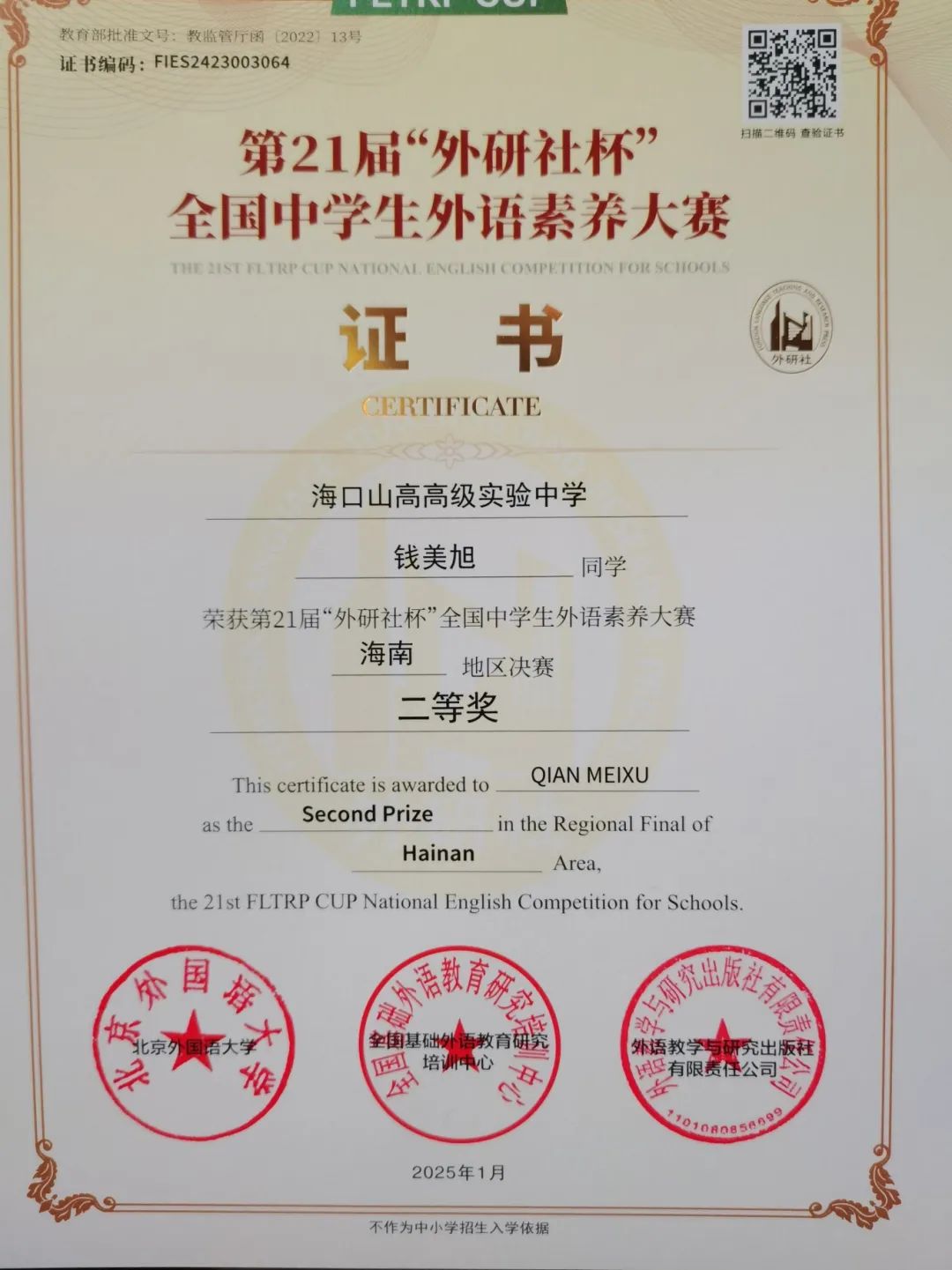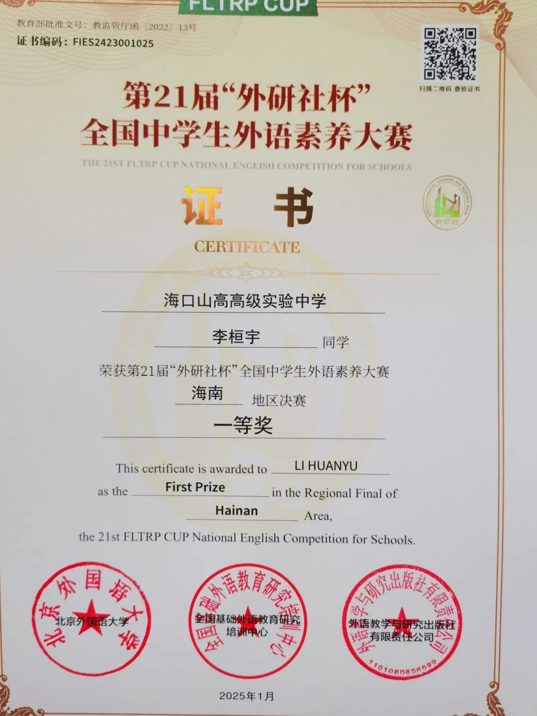 喜報 | 熱烈祝賀我校學生在第21屆“外研社杯”全國中學生外語素養(yǎng)大賽中榮獲佳績-圖片3