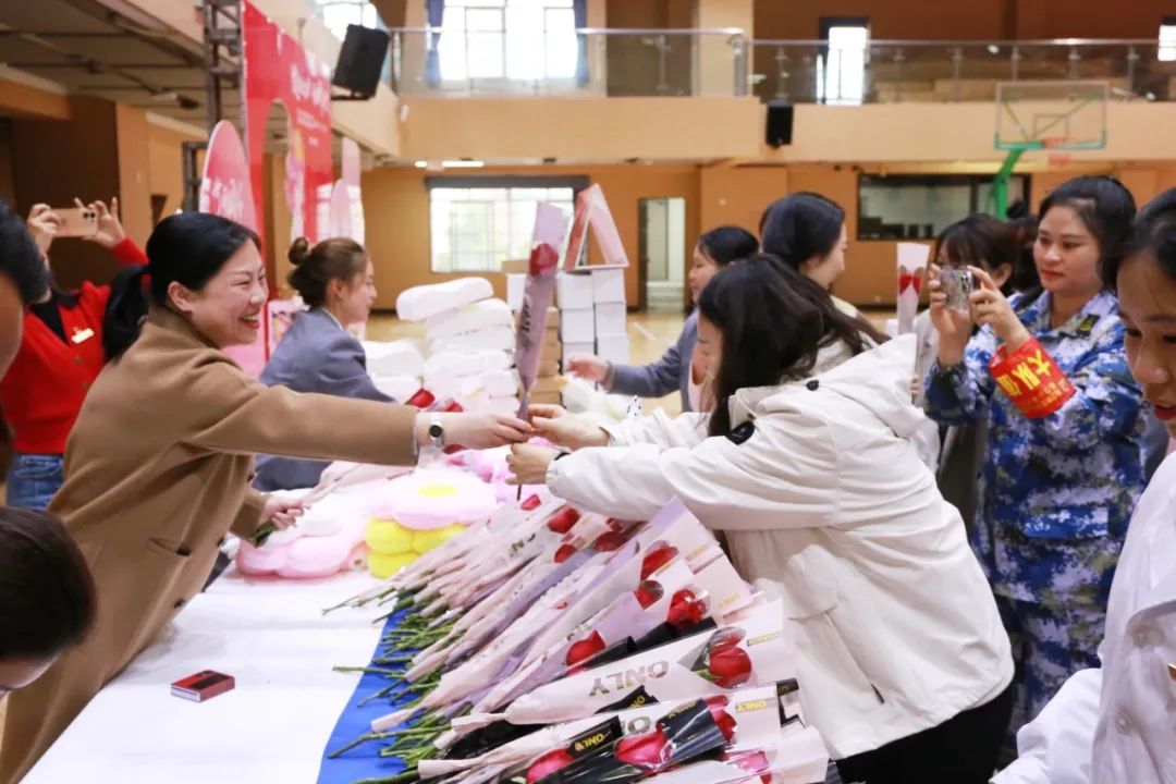 ? ? ? ?活動現(xiàn)場,校領(lǐng)導(dǎo)為女教職工贈送鮮花、禮物,并向她們致以誠摯的祝福。