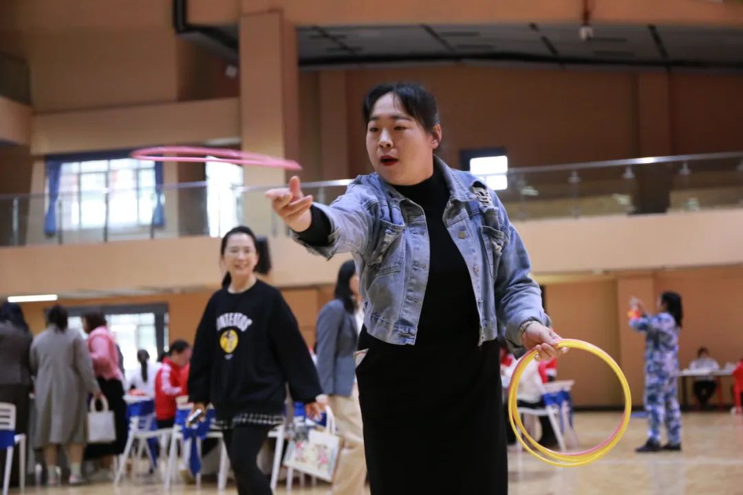 在運動和游戲區(qū),大家體驗套圈、丟沙包、翻杯子等趣味運動或游戲,歡聲笑語充滿了整個會場。