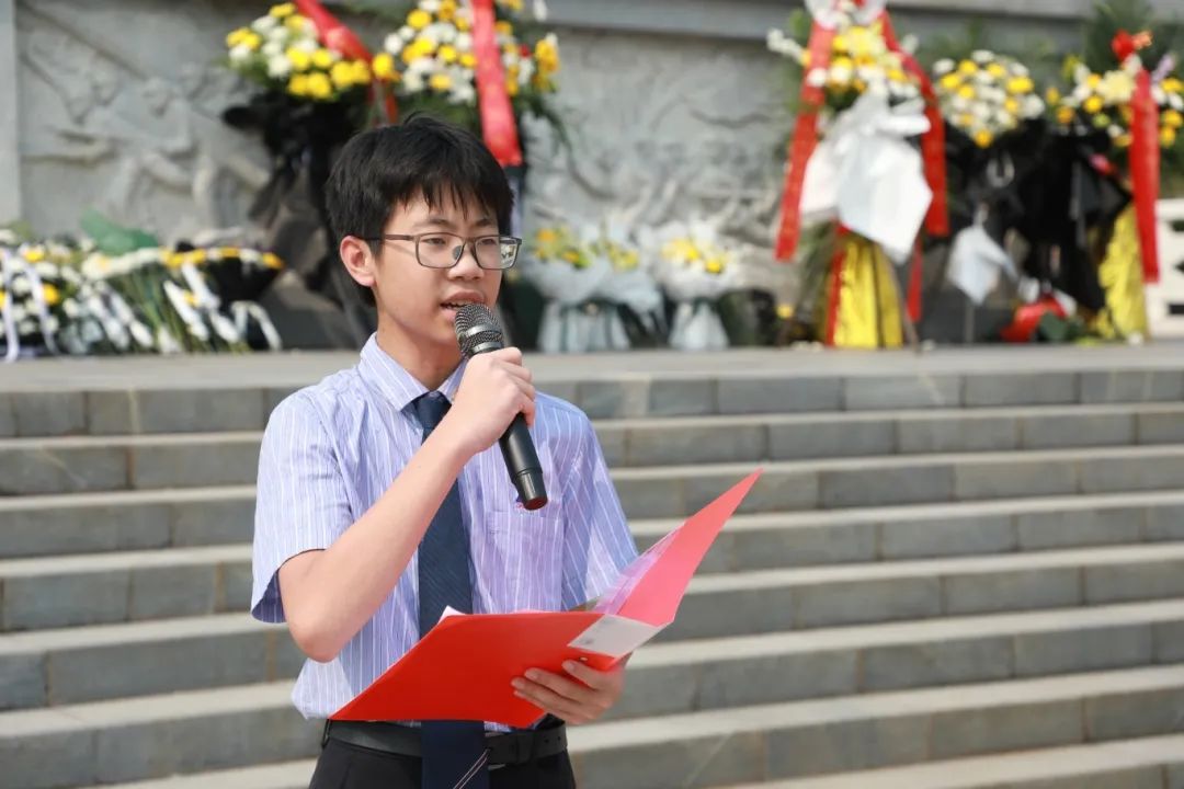 ? ? ? ?學生代表鄭澤楷同學發(fā)言,誓言將繼承先烈遺志,努力學習,報效祖國。將愛國之情化為勤學篤行的力量!同時他帶領團員莊嚴宣誓:“我志愿加入中國共產(chǎn)主義青年團……為共產(chǎn)主義事業(yè)而奮斗!”鏗鏘誓言回蕩陵園,彰顯新時代青年的責任與信仰。