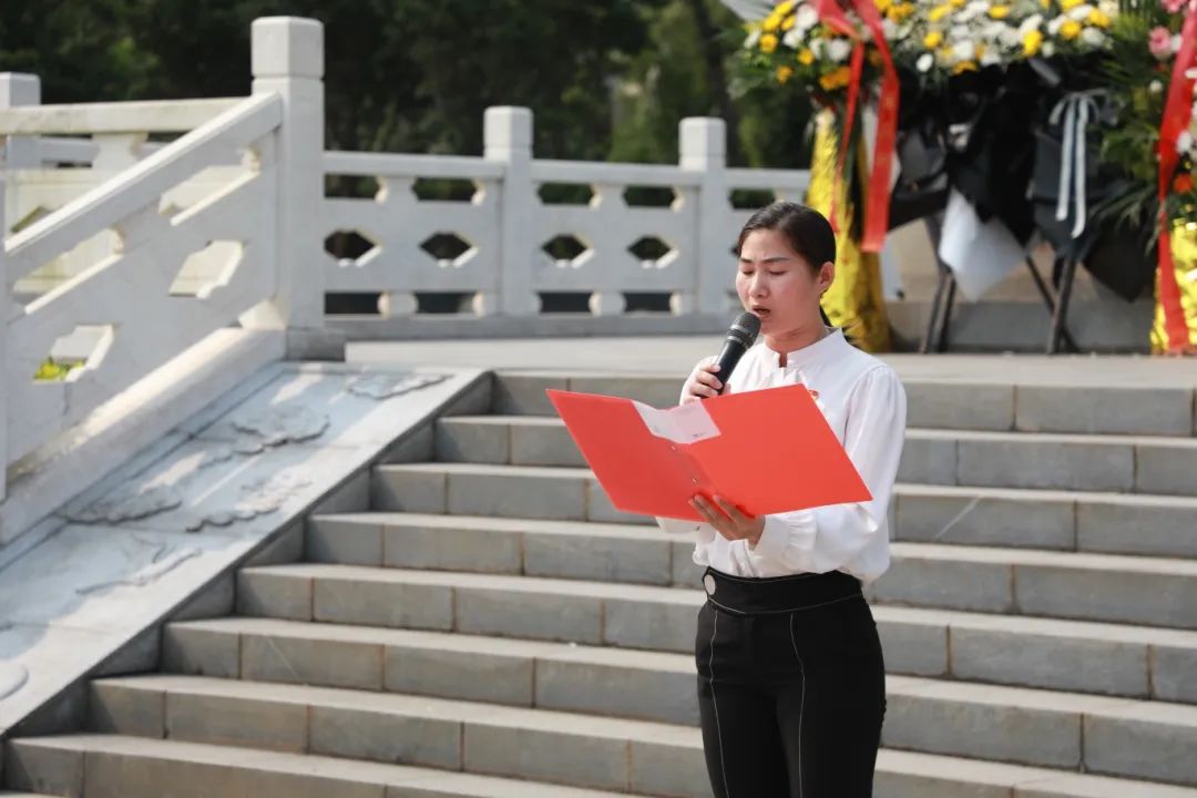 ? ? ? ?黨支部代表李芳麗老師在發(fā)言中指出:“英烈們用血肉之軀鋪就復興之路,我們當以歷史為鏡,將愛國之情化為勤學篤行的力量。”她號召青年學子傳承“為有犧牲多壯志”的擔當,在青春賽道上跑出當代青年的最好成績。