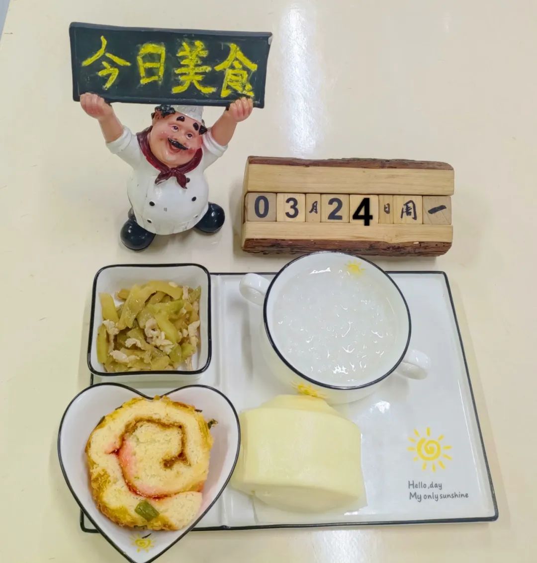 白粥、芝士香蔥卷面包、奶香饅頭、小菜