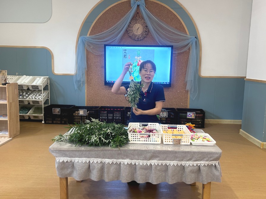 “端午采艾,懸門戶上”的傳統(tǒng)習(xí)俗文化來源已久。孩子們將艾草掛在班級(jí)門口,祈愿著以后的生活每天都開心快樂。